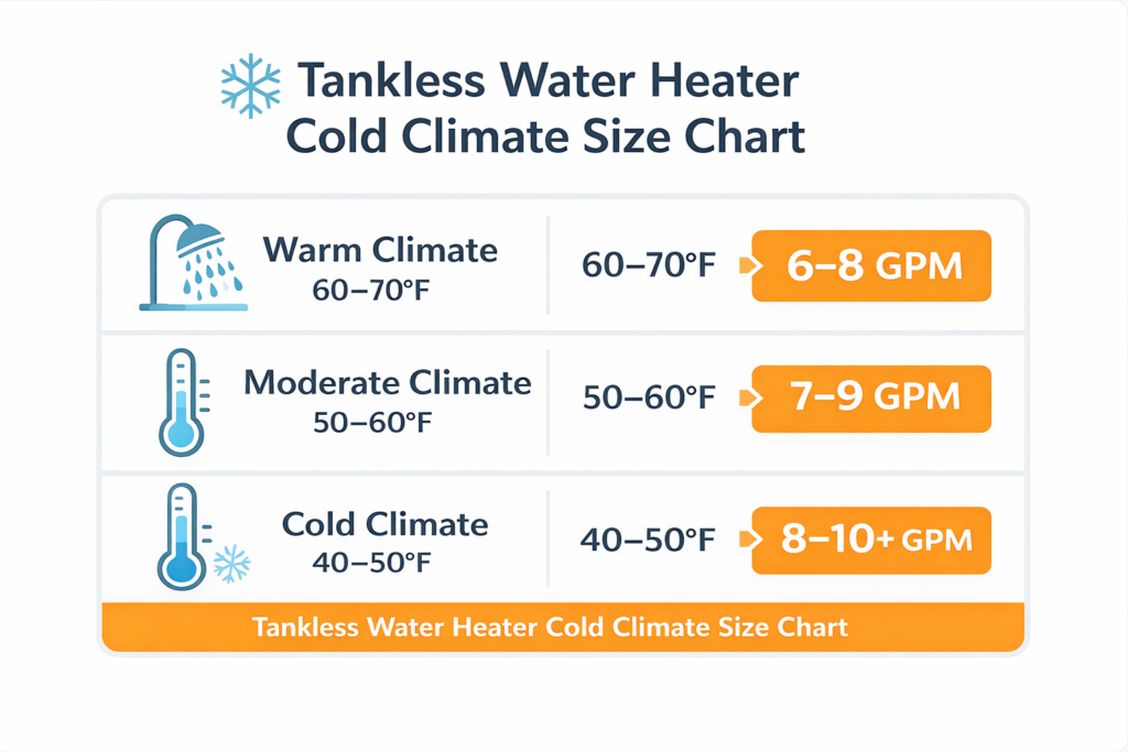The best tankless water heater for cold climates depends on flow rate, fuel type, and installation requirements. Choosing the correct size is critical to avoid temperature drops and inconsistent hot water.